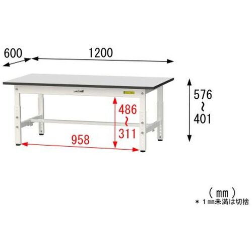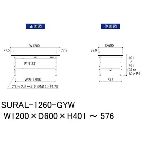 ヤマテック ワークテーブル150シリーズ 高さ調整タイプ低床用 RoHS2指令対応塩ビシート天板 W1200×D600×H401~H576mm SURAL-1260-GYW