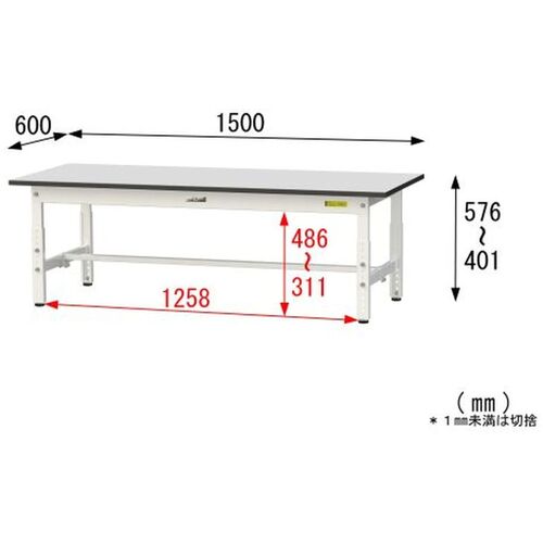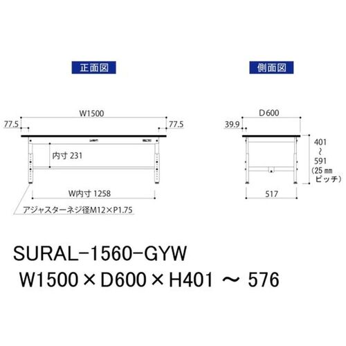 ヤマテック ワークテーブル150シリーズ 高さ調整タイプ低床用 RoHS2指令対応塩ビシート天板 W1500×D600×H401~H576mm SURAL-1560-GYW