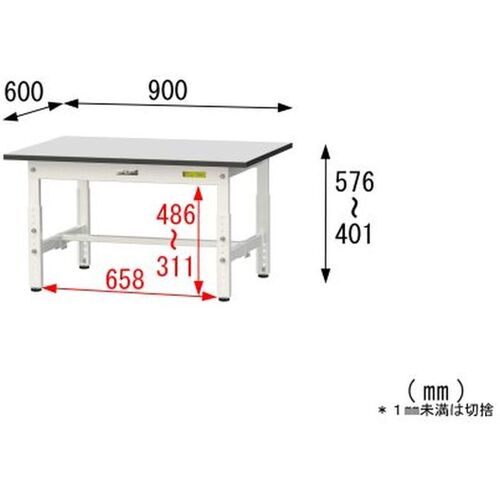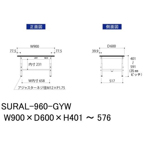 ヤマテック ワークテーブル150シリーズ 高さ調整タイプ低床用 RoHS2指令対応塩ビシート天板 W900×D600×H401~H576mm SURAL-960-GYW