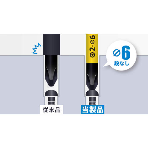 ●絶縁被膜付のドライバーですが、段差のないスリムな軸で狭い穴に入り込みます。