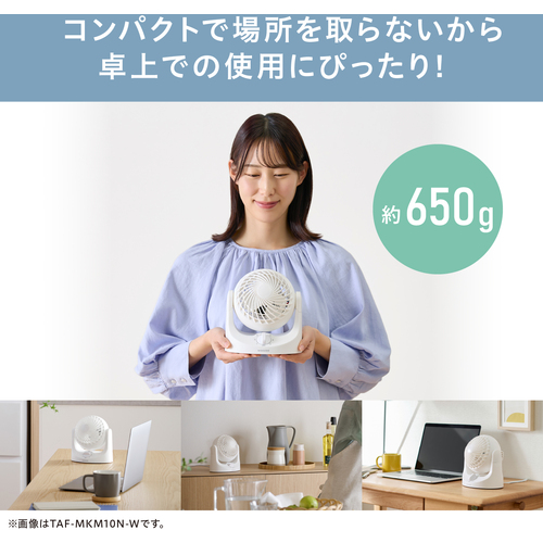 ●既存のマカロン型サーキュレーター(比較:PCF-MKM15)の約2/3のコンパクトサイズで、デスクやテーブルの上に置いても邪魔になりません。