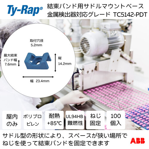 TY-Rap マウントベース 結束バンド用サドル型 金属検知器対応ポリプロピレン 明青色 タイ幅最大7.6mm ねじ固定タイプ 100個入り TC5142-PDT