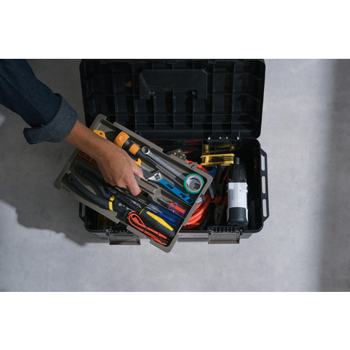●インナートレーの向きを変えるだけで高さを変えることができるので、作業後に缶やハンマーなど大きな工具を収納する際も、スムーズに収納することができます。