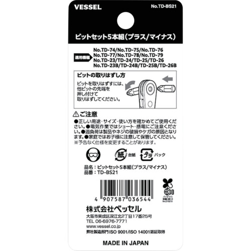 VESSEL TD-BS21 ビットセット5本組(プラス/マイナス) TD-BS21