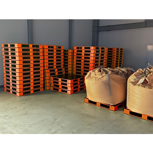 TRUSCO 差込口が見やすいパレット 1100x1100x150(片面四方差し サイドカラーオレンジ) THB-D4-1111SC-BKOR