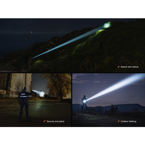 ●一般的なライトに比べて光漏れを最小限に抑えているため、対象物を集中的に照射できます。最大照射距離1500mなので、長距離を照らしたい現場に最適です。
