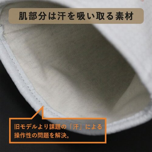●肌部分に汗を吸い取る素材を採用し、V-4より課題の汗による操作性の問題を解決しました。