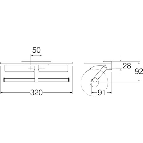 ●幅32cmダブルペーパーホルダー棚付け小物が置ける台付き