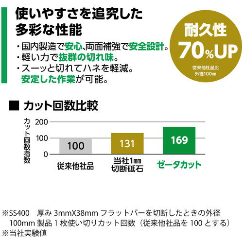 ●さまざまな厚みの鋼材でも劣らないカットスピードで効率UPします。