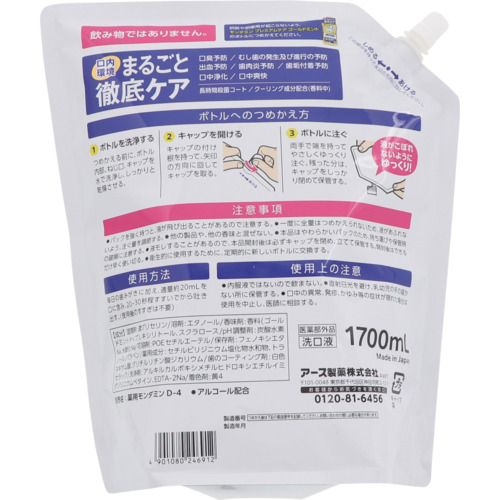 アース 洗口液 モンダミン プレミアムケア ゴールドミント つめかえ大容量1.7l 246912