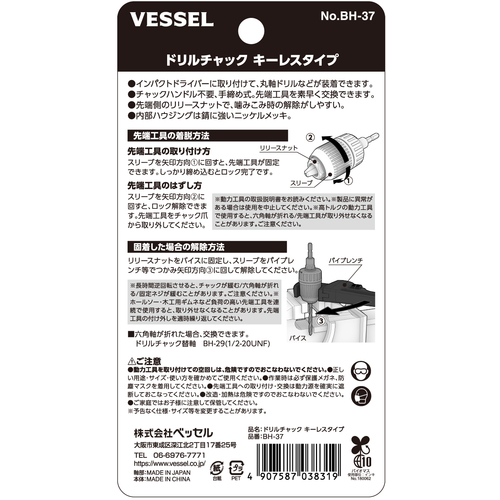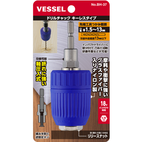 VESSEL BH-37 ドリルチャック キーレスタイプ13mm BH-37