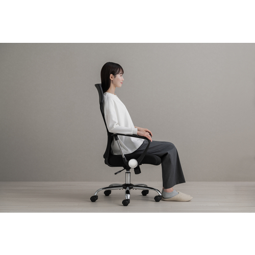 ●通気性に優れたメッシュ素材を使用しているため、長時間の作業でも快適に使用できるチェアです。