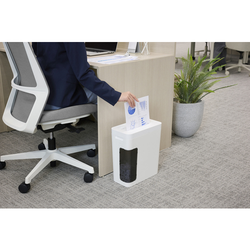 ●作業中や電話中でも音が気にならない静音設計(空転時45dB)で、家庭や小規模オフィスにスッキリ置けるコンパクトシュレッダーです。