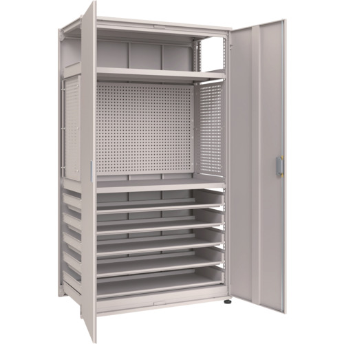 TRUSCO M3型ユニット中量棚 両開き 扉背側パネル 引出用スライド棚6段付 H2100XW900 単体 M3-U7364-SL6-SGR