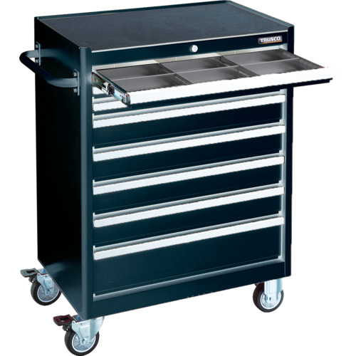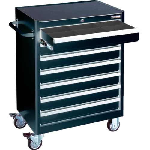 TRUSCO ローラーキャビネット ブラック 引出7段 100X7 仕切板付 TRC070SBK