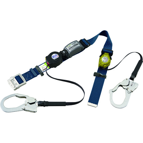 TSUYORON 胴ベルト型墜落制止用器具(巻取タイプ)補助ロープ2丁掛け仕様 ロック機構付きワン・ハンドリトラ+巻取式補助ロープ 青 Mサイズ 幅50MM×長さ1200MM TB-ORL-2-593-SRBT-BL4-M-BP
