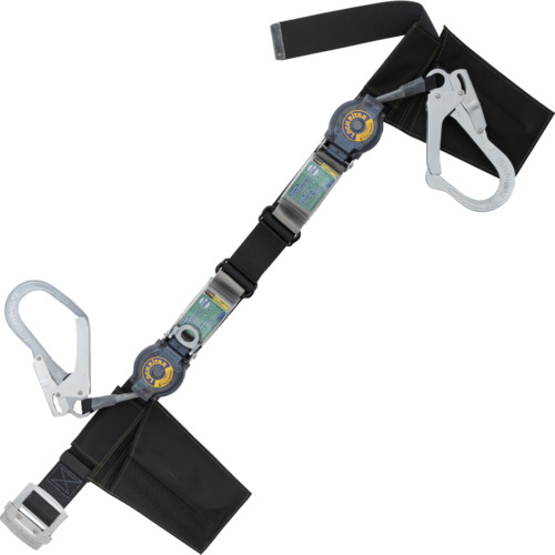 TSUYORON 胴ベルト型墜落制止用器具(巻取タイプ)ランヤード2丁掛け仕様 ロック機構付きロックリトラ+伸縮式ノビロン(BK)黒 Mサイズ 幅50MM×長さ1200MM TB2LRL593NV5931BLKBKMBP