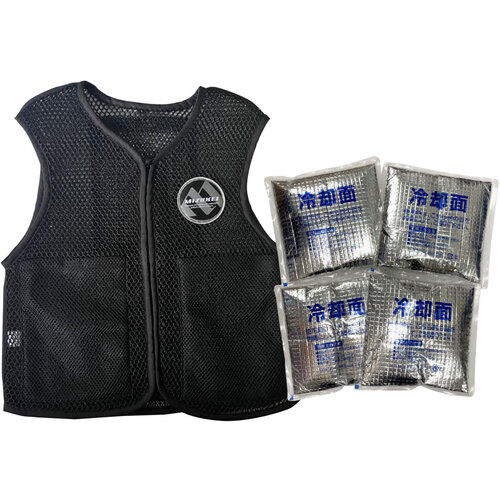 ミズケイ ポケット付きハニカムメッシュベスト「快風」<ブラック>LLサイズ+保冷剤4個セット 8131983