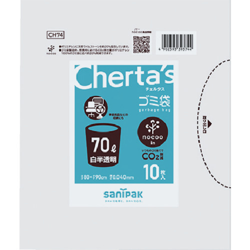 サニパック チェルタスゴミ袋70L10枚白半透明NOCOOIN CH74