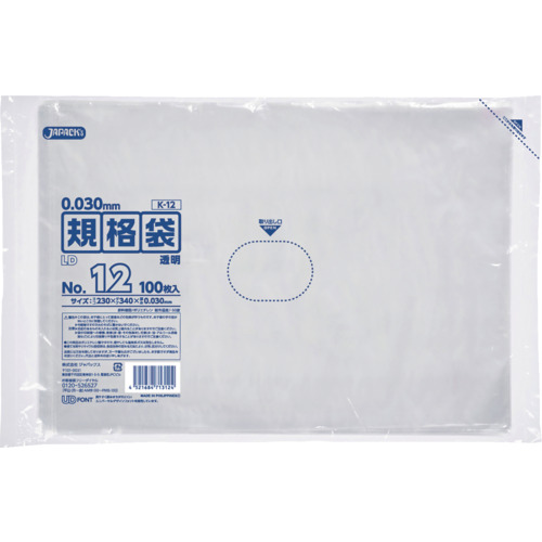 ジャパックス LD規格袋 No.12 100枚 透明 厚み0.03mm K-12
