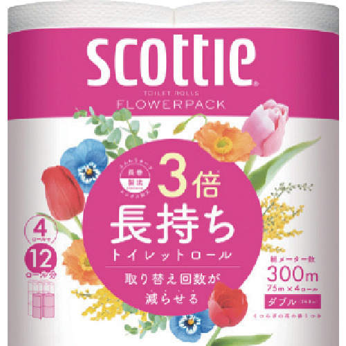 クレシア トイレットペーパー スコッティフラワーパック3倍長持ち4ロールダブル(22767/22775) 22775