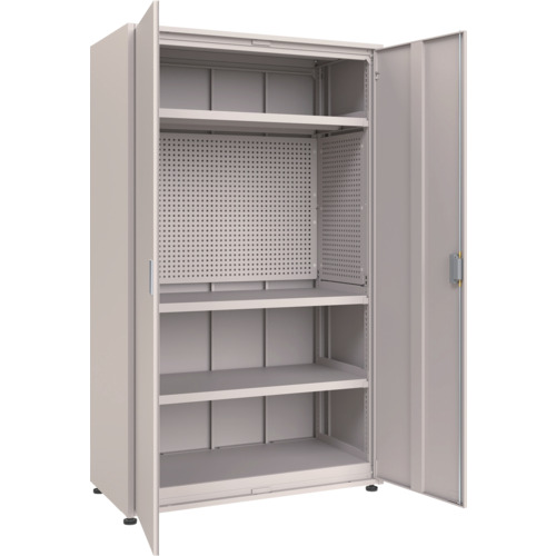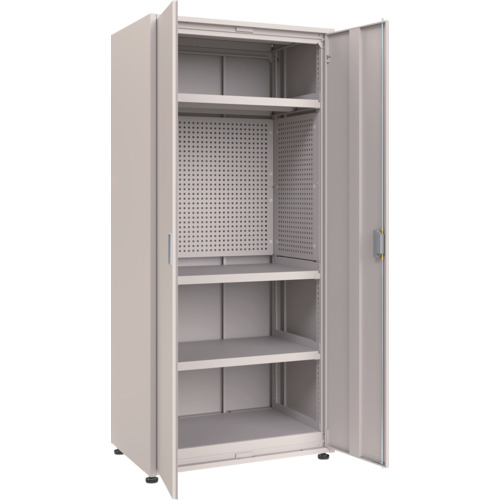 TRUSCO M3中量棚 背板・側板・扉付 W900XD595XH2100 中棚3段 パンチングパネル付 M3U7365IPP3SGR