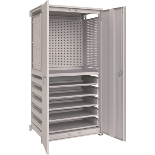 TRUSCO M3型ユニット中量棚 両開き扉 背側パネル 引出用スライド棚3段付 H2100XW900 単体 M3-U7364-SL3-SGR
