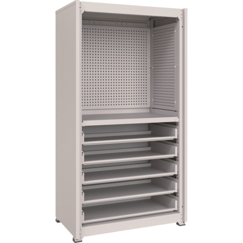TRUSCO M3中量棚 背板・扉付 W900XD595XH1800 中棚1段スライド棚5段 パンチングパネル付 連結 M36363IPP3SDL35SGDB