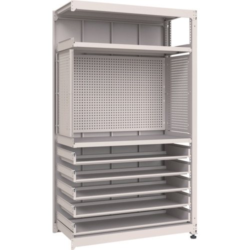 TRUSCO M3中量棚 背板・側板付 W900XD595XH1800 中棚1段スライド棚5段 パンチングパネル付 M36363IPP3SL35SG