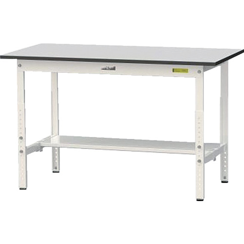 ヤマテック 軽量作業台 ワークテーブル150シリーズ 高さ調整タイプ 半面棚付 低圧メラミン天板 W1200×D900×H600~900mm シルキーホワイト SUPA-1290T-WW