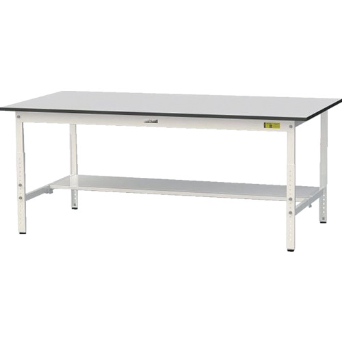ヤマテック ワークテーブル150シリーズ 高さ調整タイプ 半面棚板付 RoHS2指令対応塩ビシート天板 W1800×D900×H600~H900mm SURA-1890T-GYW