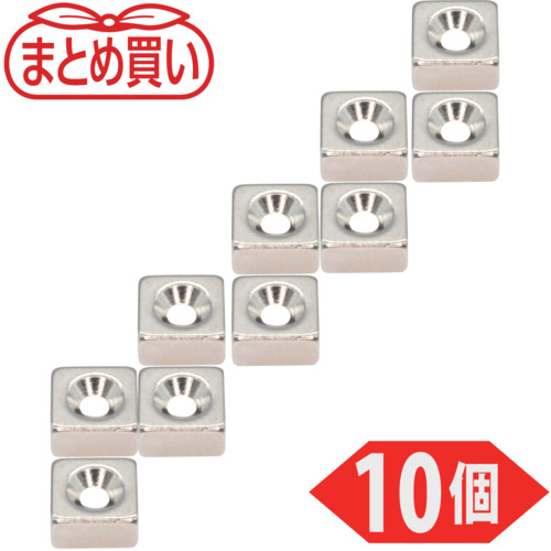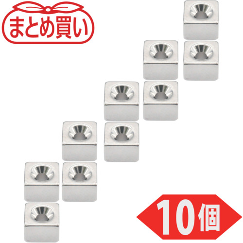 TRUSCO まとめ買い ネオジム角形磁石 皿ねじ穴付 6MM×6MM×4MM M1.6 10個入 T06K04-M1.6-10P