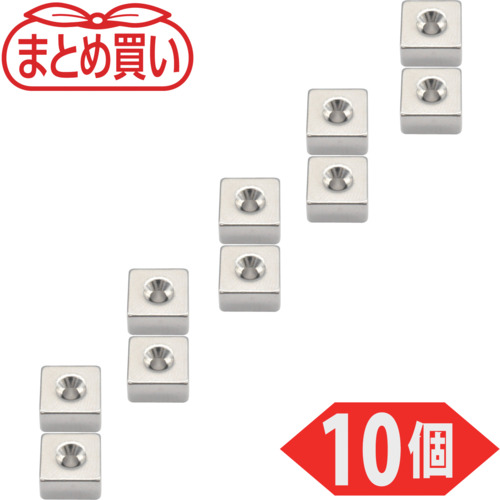 TRUSCO まとめ買い ネオジム角形磁石 皿ねじ穴付 9MM×9MM×5MM M2 10個入 T09K05-M2-10P