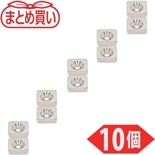 TRUSCO まとめ買い ネオジム角形磁石 皿ねじ穴付 12mm×10mm×4mm M3 10個入 T12K04-M3-10P