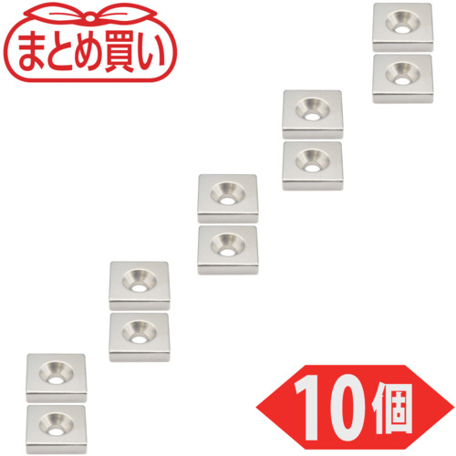 TRUSCO まとめ買い ネオジム角形磁石 皿ねじ穴付 25mmX25mmX6mm M6 10個入 T25K06-M6-10P