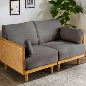 ラタン調ワイドボリュームソファ チャコールグレー 組立品