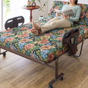 寝心地が選べる手動ベッド 花柄 高反発セミシングル 組立品