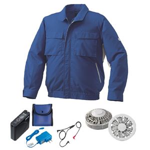 KU91910 空調服 R 綿・ポリ混紡 脇下マチ付きII FAN2200G・RD9261・LISUPER1セット シルバー×ブルー L