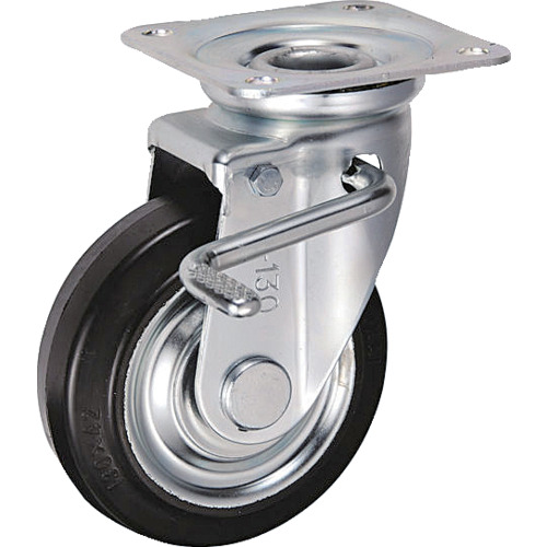 シシク プレート式キャスター(プレス製ゴム車輪) 固定ストッパー 径130mm ブラックキャスター BKWKB-130