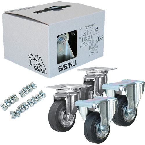 シシク 箱入りキャスタ スタンダードプレスキャスタ(自在WJ-75、固定WK-75 各2入) ワンパックキャスタ OPC-W75