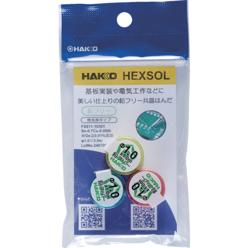 白光 はんだ ヘクスゾール 鉛フリー 共晶 Sn-0.7Cu-0.05Ni Φ1mm 3m FS511-10301