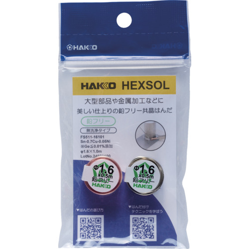 白光 はんだ ヘクスゾール 鉛フリー 共晶 Sn-0.7Cu-0.05Ni Φ1.6mm 1m FS511-16101