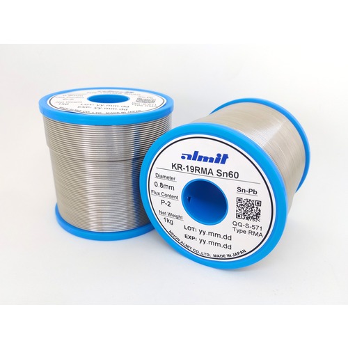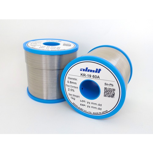 アルミット 鉛入りやに入りはんだ KR-19 難はんだ付け用 0.8mm KR19-60A-2.5-0.8MM