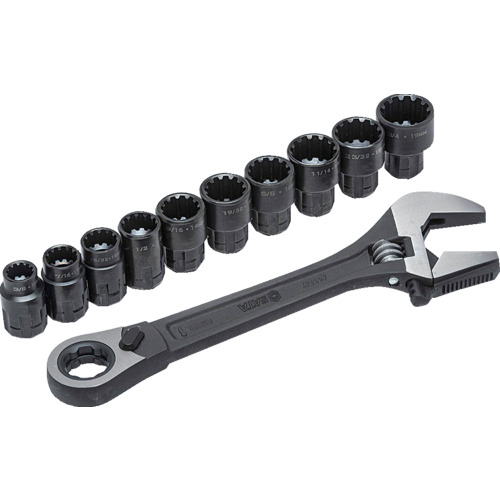 SATA 調整可能コンビネーションモンキーレンチソケットセット 黒(11点) ST09000