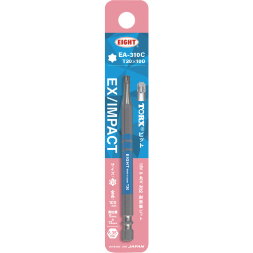 EIGHT トーションビット EX/IMPACT TORXカラービット単品 T20×100mm 差込溝9mm&13mm EA-310C T20 X 100